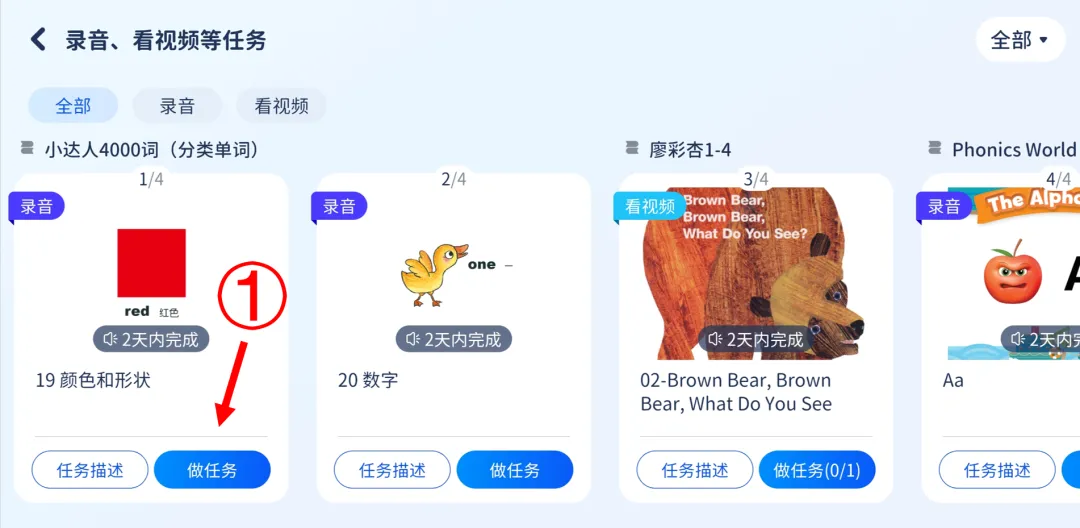 ✅特点:分「学单词」「学句子」,边唱边积累词汇与短句。