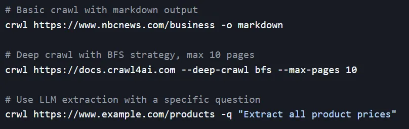 别被黑底白字的命令行吓到,这其实是 Crawl4AI 送给所有不爱写代码星人的“作弊码”。