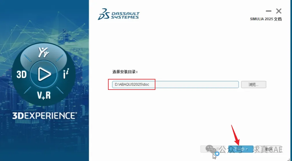 12、选择帮助文档安装路径,建议在C盘之外的其余盘下,可在ABAQUS安装路径下建立子文件夹。