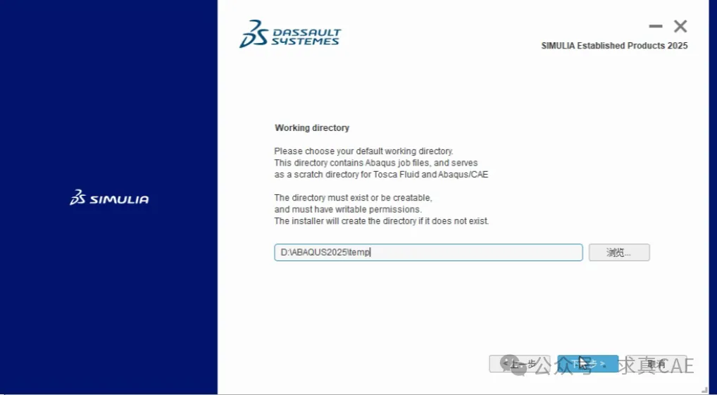 31、单击浏览,在ABAQUS的安装路径下新建一个temp文件夹并选中,单击下一步
