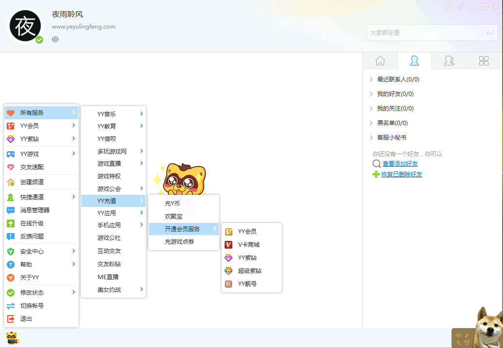 删除主界面图标:游戏大厅、游戏特权、YY会员、娱乐大厅、精彩直播、交友速配