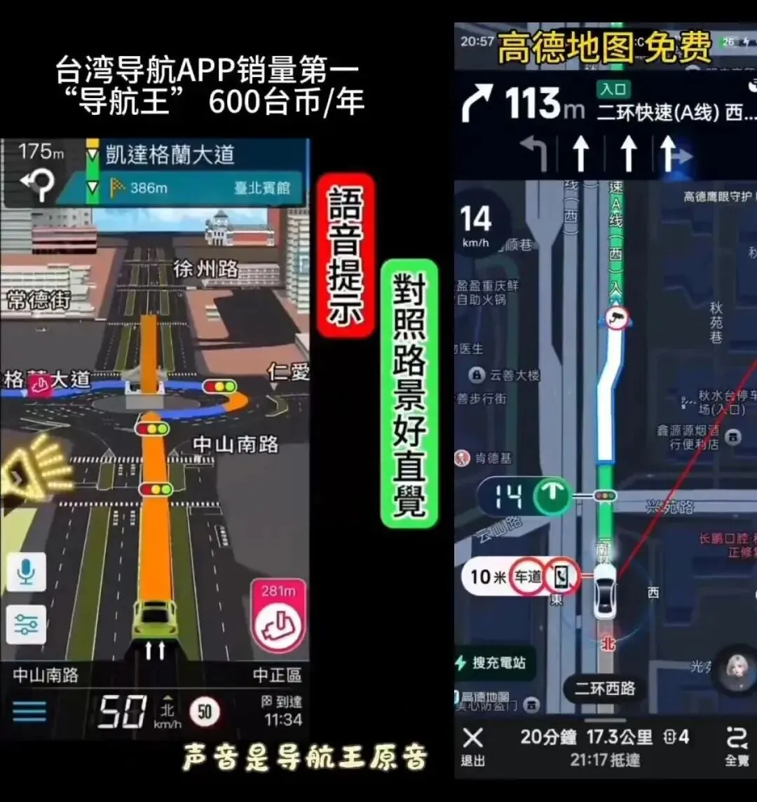 此外,语音还支持闽南语和客家话,路名发音准确,本地化做到位了,对比现有导航应用,谷歌地图在台湾的更新速度慢,语音播报经常出错,本土的导航王等应用界面老旧,智能化程度低,高德的体验明显更好,用户实测之后发现好用。