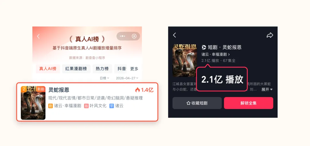 10小时破亿、24小时破2亿:绘梦工坊ai联合《灵蛇报恩》跑出短剧加速度