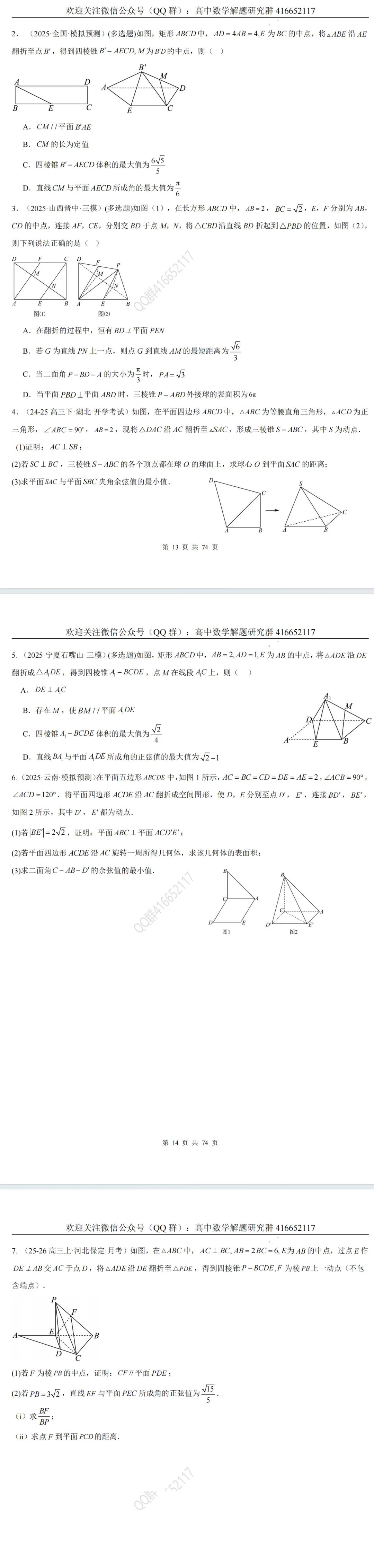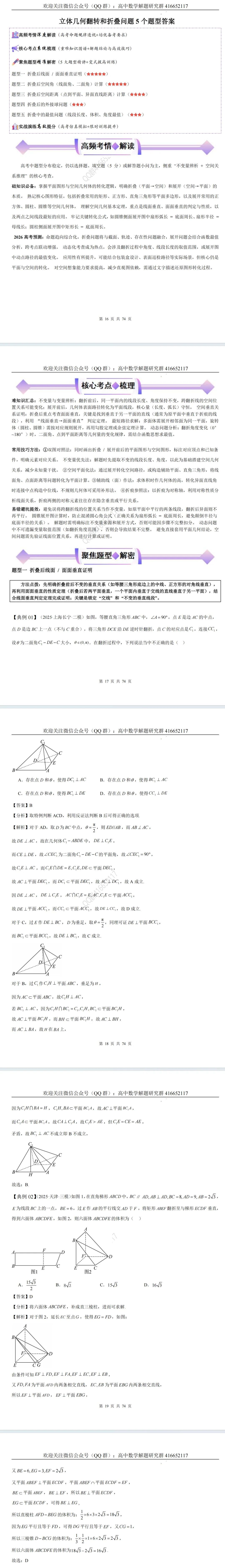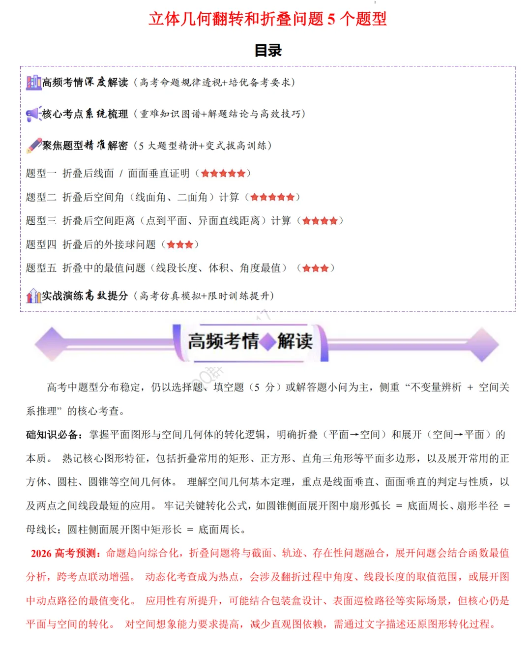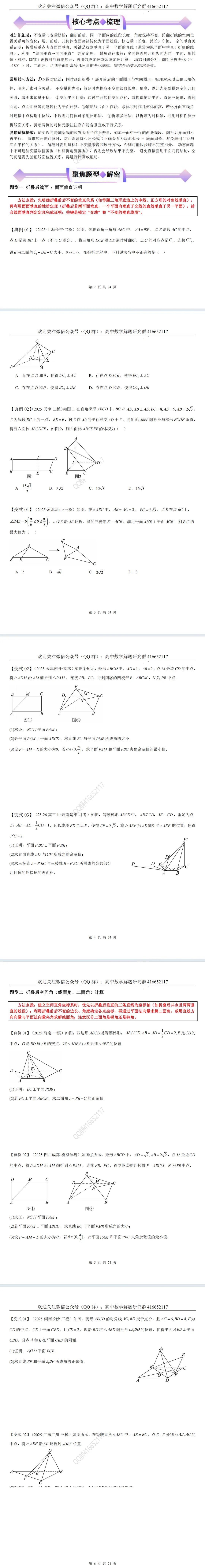 立体几何翻转和折叠问题5个题型(word分享)
