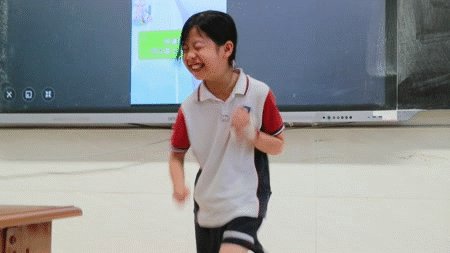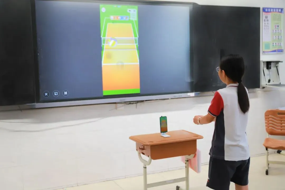 “AI活力体感”区,同学们对着屏幕玩起了体感游戏,蹦蹦跳跳间,AI姿态识别技术实时捕捉动作、反馈标准,原来锻炼身体也可以很有趣。