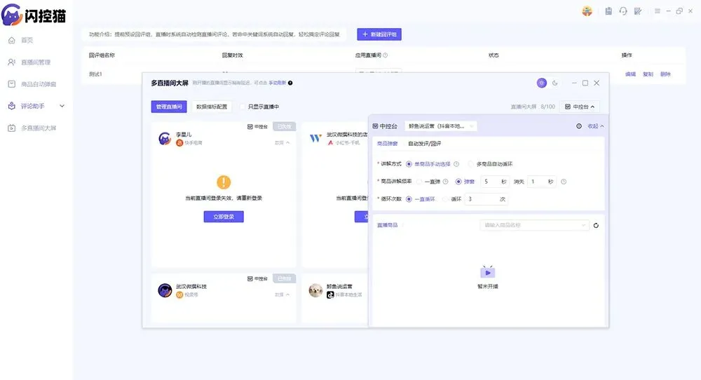 说到这里,你可能会问,这样的工具去哪里找?市面上确实有一些服务商提供了这类跨平台直播聚合中控系统。比如我们团队在用的「闪控猫」,它就是一个运行在Windows电脑上的多平台直播运营工具。它的核心思路不是给你再造一个直播软件,而是通过技术方式,把你已经开播的各个平台直播间(包括视频号、抖音、小红书、快手等)“连接”并“聚合”到它的一个操作界面里。