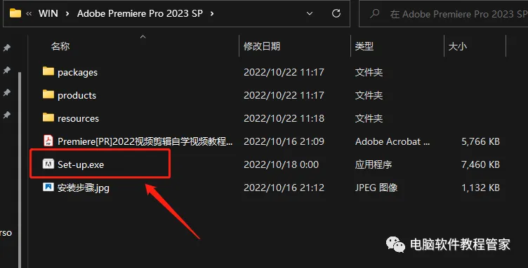 2.双击打开解压出来的Adobe Premiere Pro 2023 SP文件夹;