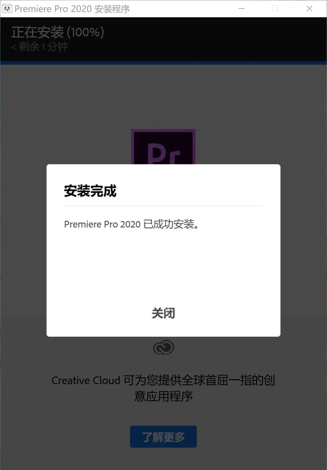 5.安装完成后,点击关闭!