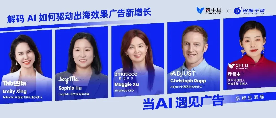 围绕这一核心命题,执牛耳传媒创始人、出海主场主理人乔邦主,与四位来自全球主流平台及营销科技平台的实战派专家聊了聊。他们分别是:Taboola 中国区电商行业负责人 Emily Xing、LoopMe 亚太区商务总监 Sophia Hu、Adjust 中国区业务负责人 Christoph Rupp、zMaticoo CEO Maggie Xu。他们所在的平台,覆盖了从开放网络到移动端、从归因测量到广告变现的关键环节。这场对话旨在厘清一个核心问题:对于中国出海品牌而言,这些平台如何真正以AI赋能,实现从“流量工具”到“增长伙伴”的本质进化?