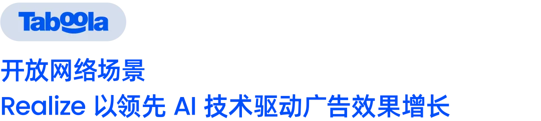 Realize的核心优势在于,由强大的效果型AI驱动,依托于Taboola与媒体合作伙伴的页面代码集成所赋予的独特数据优势,使其在优化和投放广告时,能够比其他任何开放网络平台获得更多的数据信号,从而实现可衡量的规模化效果提升。