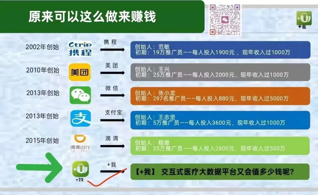 回顾过往,微信早期推广员、美团城市合伙人,如今仍在享受源源不断的分润收益。+我APP复刻这一成功模式,开启限量推广计划:前25万名推广用户,可永久享受全国线上线下流水分润,团队业绩永不归零。