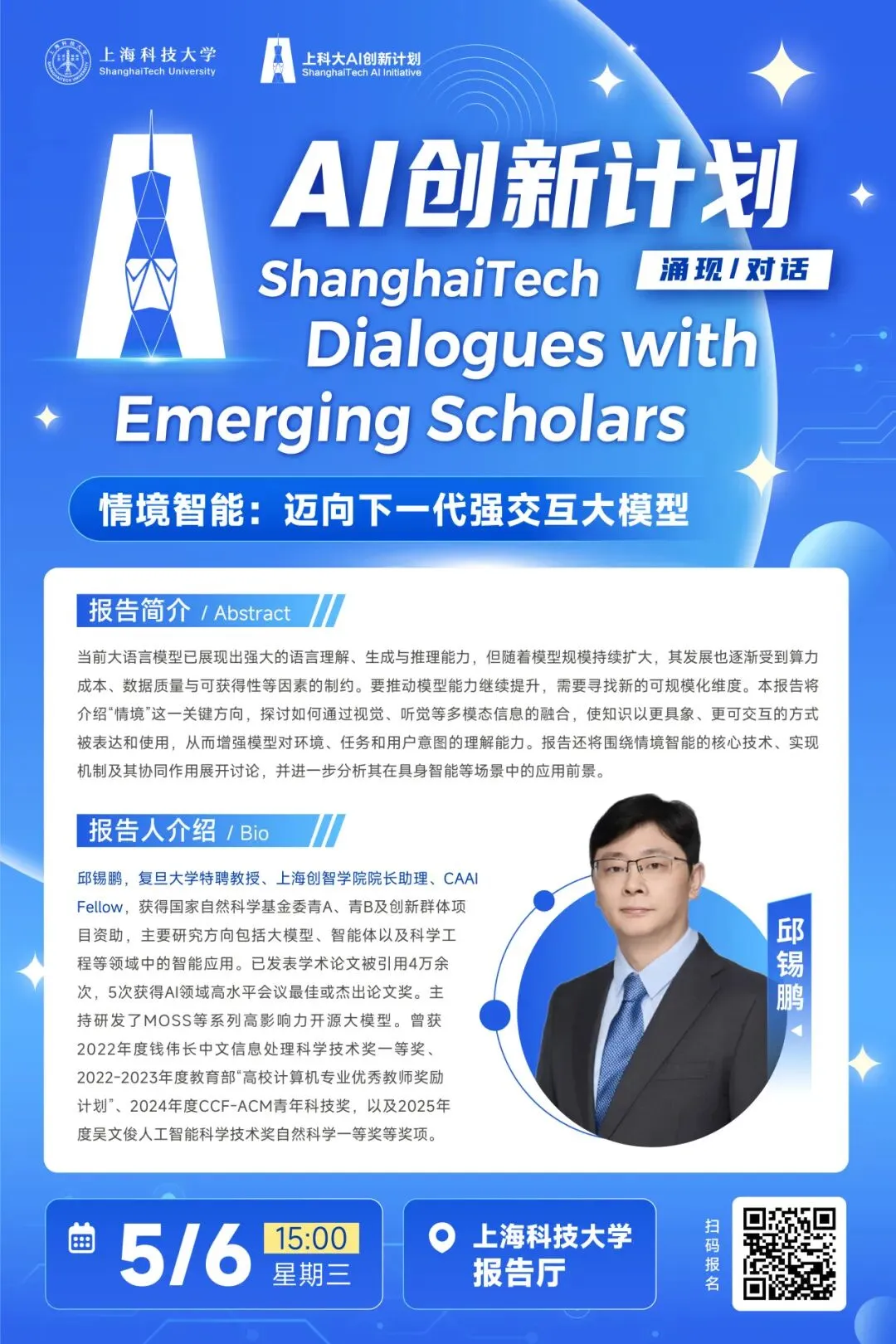 【上科大AI创新计划 涌现/对话】5月6日 情境智能:迈向下一代强交互大模型