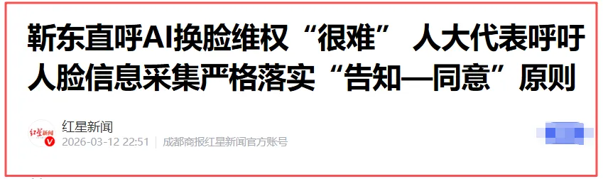 很多明星也被AI换脸搞得不胜其烦,有人用AI克隆李亚鹏、靳东等名人的脸和声音,开直播带假货,不仅侵犯肖像权,还严重损害了他们的名誉和利益。因此,今年两会上,不少代表就纷纷向滥用AI克隆数字人开炮,要求尽快立法,从严治理。