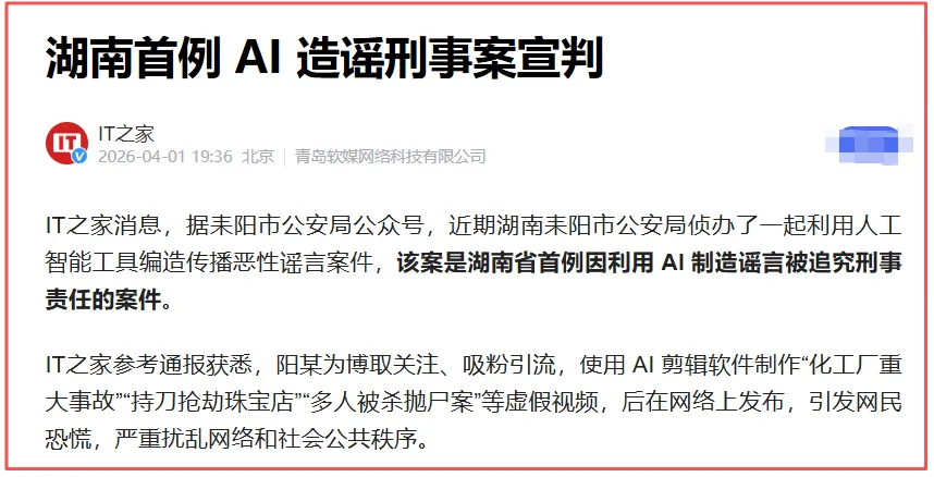 造谣一张嘴,辟谣跑断腿。如果任由AI造谣,将浪费巨大的人力物力财力去辟谣。
