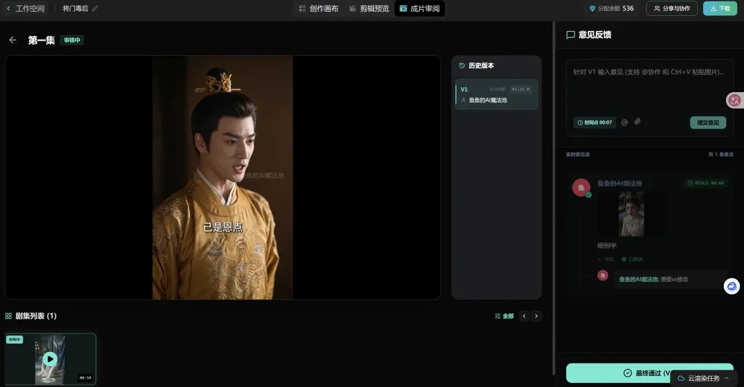跑完《重生之将门毒后》的整条短剧工作流,我只有一个感受:这可不是简单的工具,AniShort 是真的手搓出了一个剧组啊!