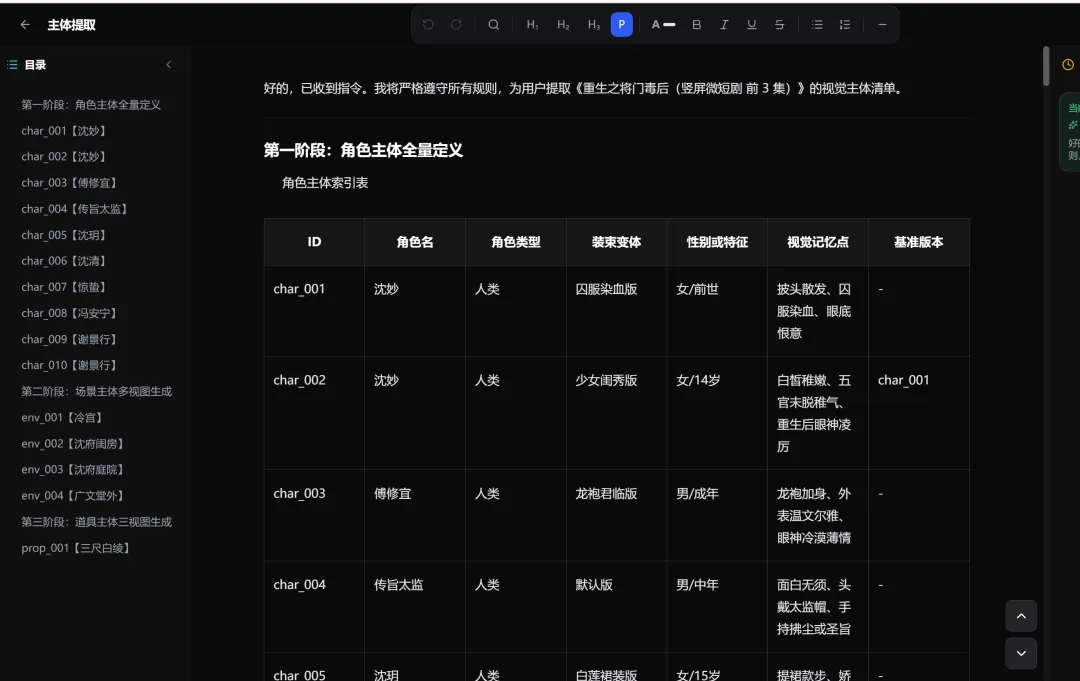 这样我们就可以确保,后面每一集用到这个角色,直接从【主体库】里提取,让全片的人脸不崩、场景不乱。