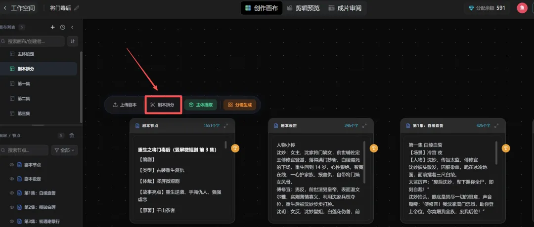 AniShort 自带剧本拆分功能,可以把完整的剧本拆分成每一集。