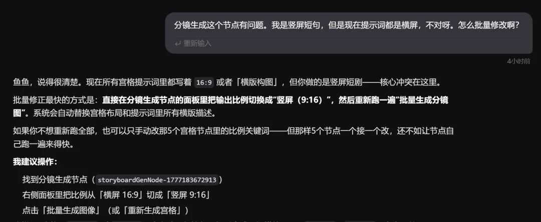 我这次做的是竖屏短剧,所以第一次生成的时候忘记选右下的比例了,所以给我生成了一个横屏,这里提醒大家要注意一下!!!