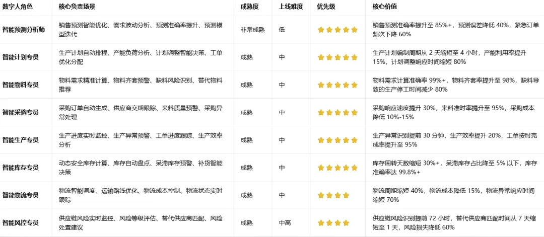 落地前提:已建立供应链数字孪生模型,且模型与 ERP/MES/SRM/WMS 系统实时数据同步;已积累 3 年以上供应链历史数据,用于模型训练。