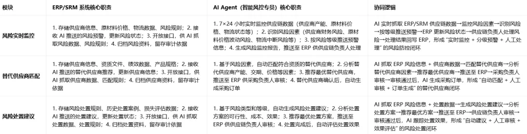 “全自动风险处置、零人工干预” 不可取,供应链风险处置属于企业战略决策环节,重大风险处置必须保留人工终审、集体决策机制,AI 仅能做风险识别与辅助处置,不可替代人工决策。