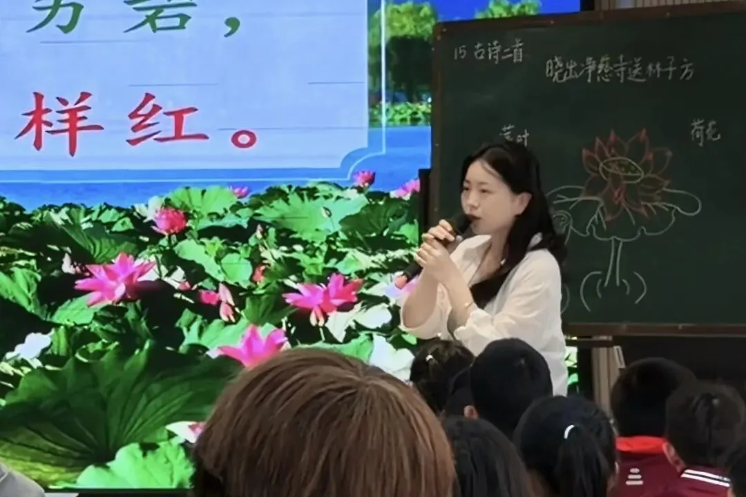 朱子旭老师执教《晓出净慈寺送林子方》,本课中她依托思享慧AI教学平台,围绕古诗教学设计“思、享、汇”一体化互动环节,借助平台的智能展示、即时反馈功能,充分调动学生课堂积极性,鼓励学生大胆表达对古诗的理解与感悟。