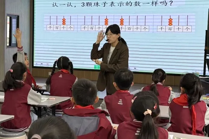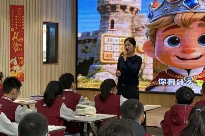 数学课堂因AI的助力而妙趣横生。老师们借助AI动态图表让数据“说话”,将“生活中的大数”“平均数”等抽象概念可视化呈现。配合智能反馈与闯关游戏,学生在“不计算城堡”里自主探究,扎实掌握运算策略,思维进阶清晰可见。