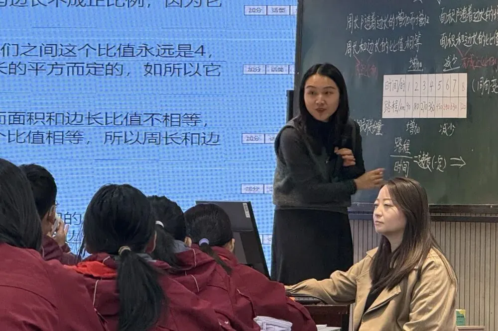 赵文静老师执教《正比例》,本课中她深度融合思享慧AI工具,课前借助AI摸排学生认知起点,课中依托平台设计三组对比探究活动,引导学生在变化中发现“比值一定”的数学本质,同时通过AI实时诊断学情,精准定位学生的知识误区,将传统“教师讲授”的课堂模式转变为“师生共构”,有效突破正比例概念建构的难点。