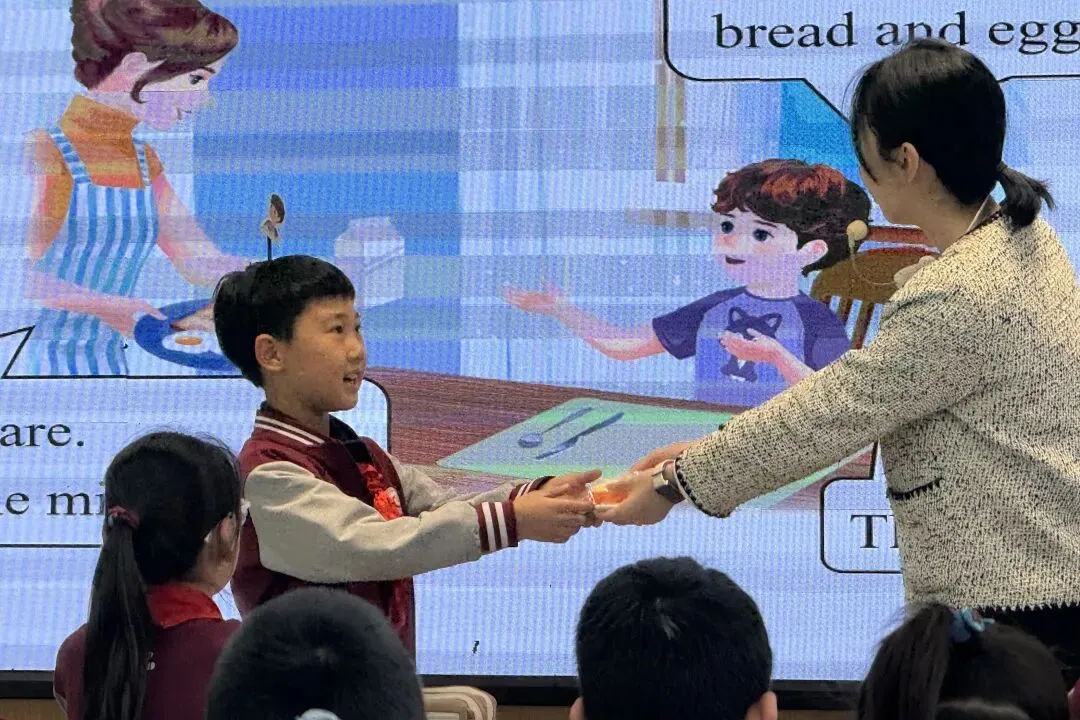 AI为英语学习架起了跨越时空的语言桥梁。老师们利用AI 创设购物、点餐等真实生活情境,让学生在原汁原味的语境中自然习得语言。智能评测工具为每位学生提供即时口语反馈,英语综合语用能力显著提升。