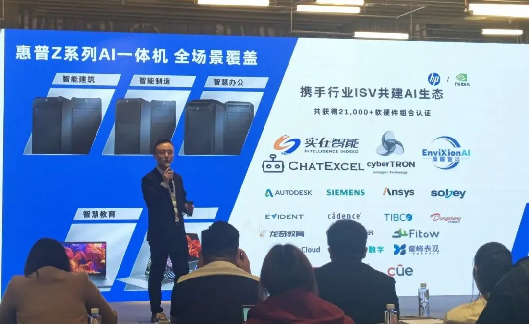 会议现场,惠普详解 Z 系列 AI 一体机矩阵,涵盖 22 款台式及移动工作站,适配多领域场景。重点展示的 AI 智能体,集成主流大模型,支持本地私有化部署,可自动化处理客服工单、数据分析等工作,大幅提升效率、降低错误率。