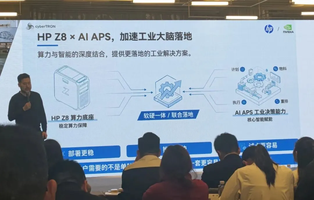 案例分享环节,惠普介绍了工业智造、智能办公、创意设计三大领域的落地成果,并提出“端侧算力 + Agent”最优解,以 Z 系列工作站为底座,联合本土伙伴提供私有化方案,构建共赢 AI 生态。