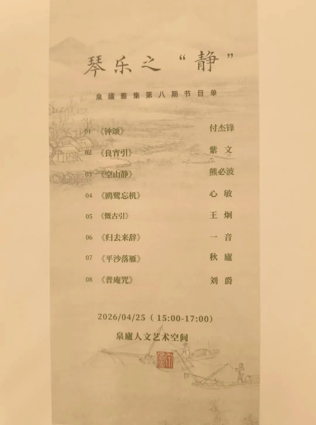 主持人刘老师说,很多人以为“静”就是不出声。但古琴的“静”恰恰相反——它是一个音出来,清清淡淡,让你浮躁的心,立刻安静下来。