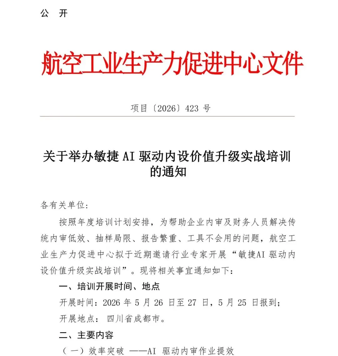 关于举办敏捷AI驱动内设价值升级实战培训的通知