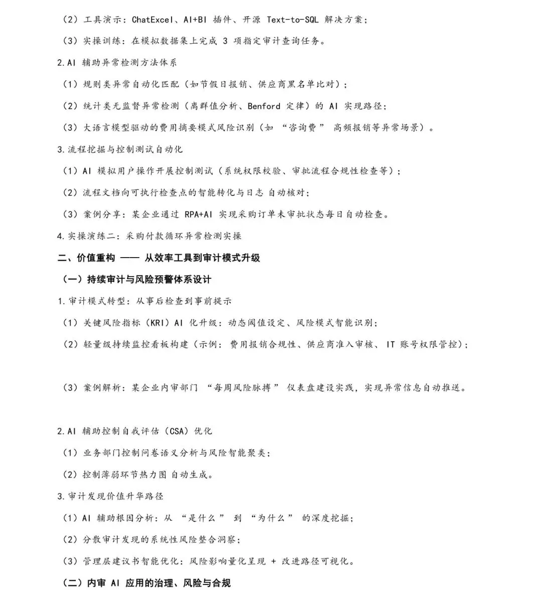 内设价值升级、内审、财务审计、合规风控、AI 审计、数字化转型、实战培训、国企审计、AI 辅助审计、异常检测、持续审计、风险预警、审计效率、审计报告、数据治理