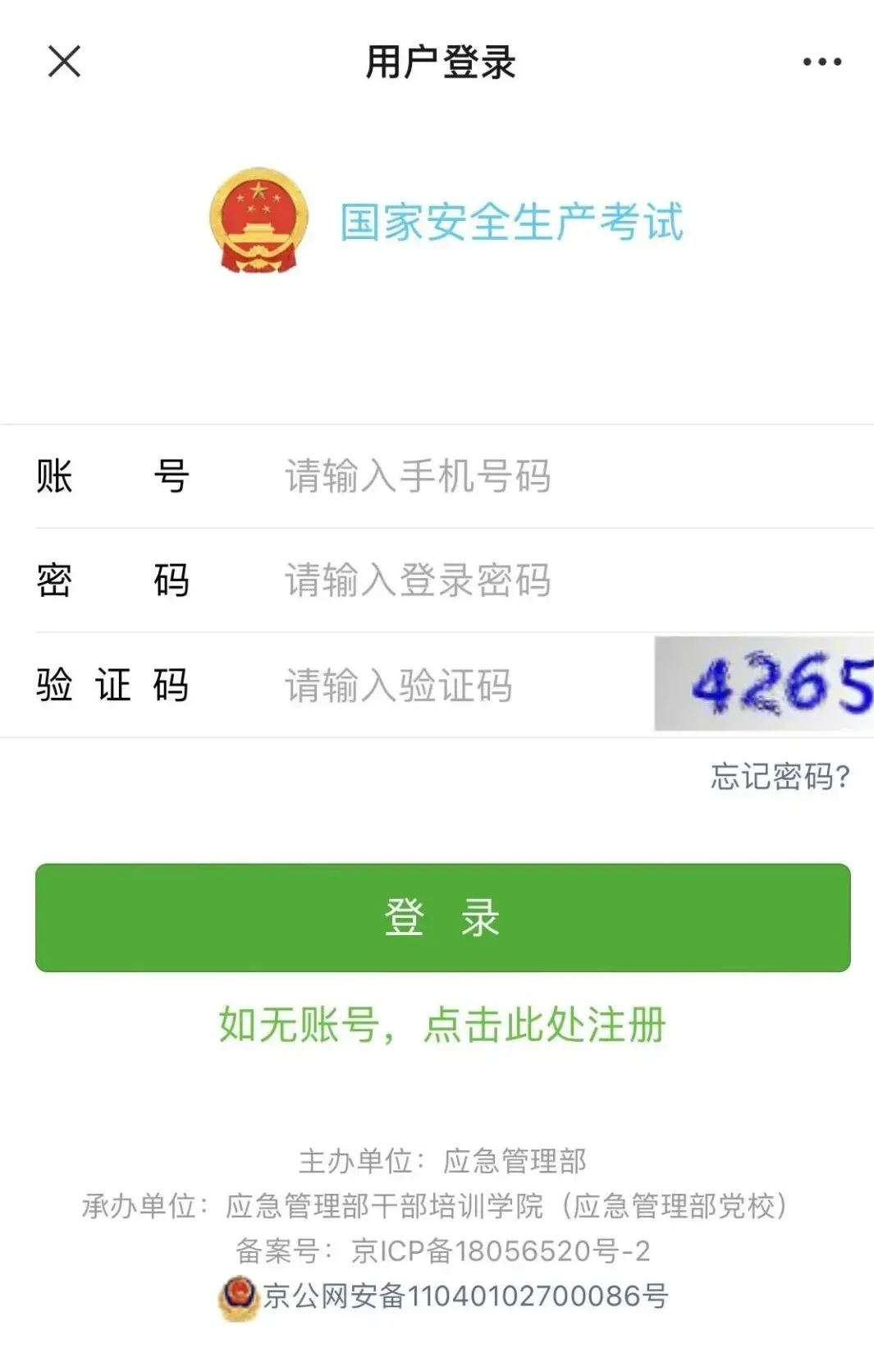 点击下面公众号平台入口,关注“国家安全生产考试” 微信公众号。