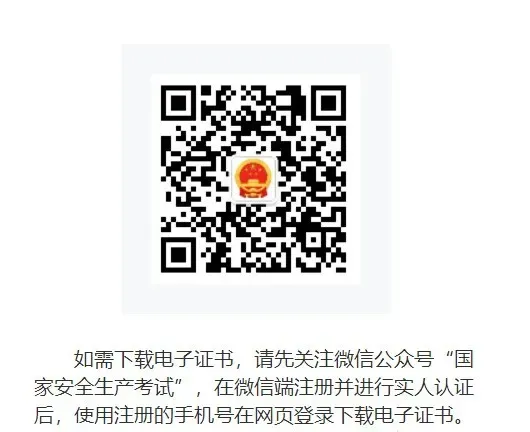 ★【手机端】通过“国家安全生产考试” 微信公众号菜单栏“我的证书”,根据界面指示操作下载电子证书;