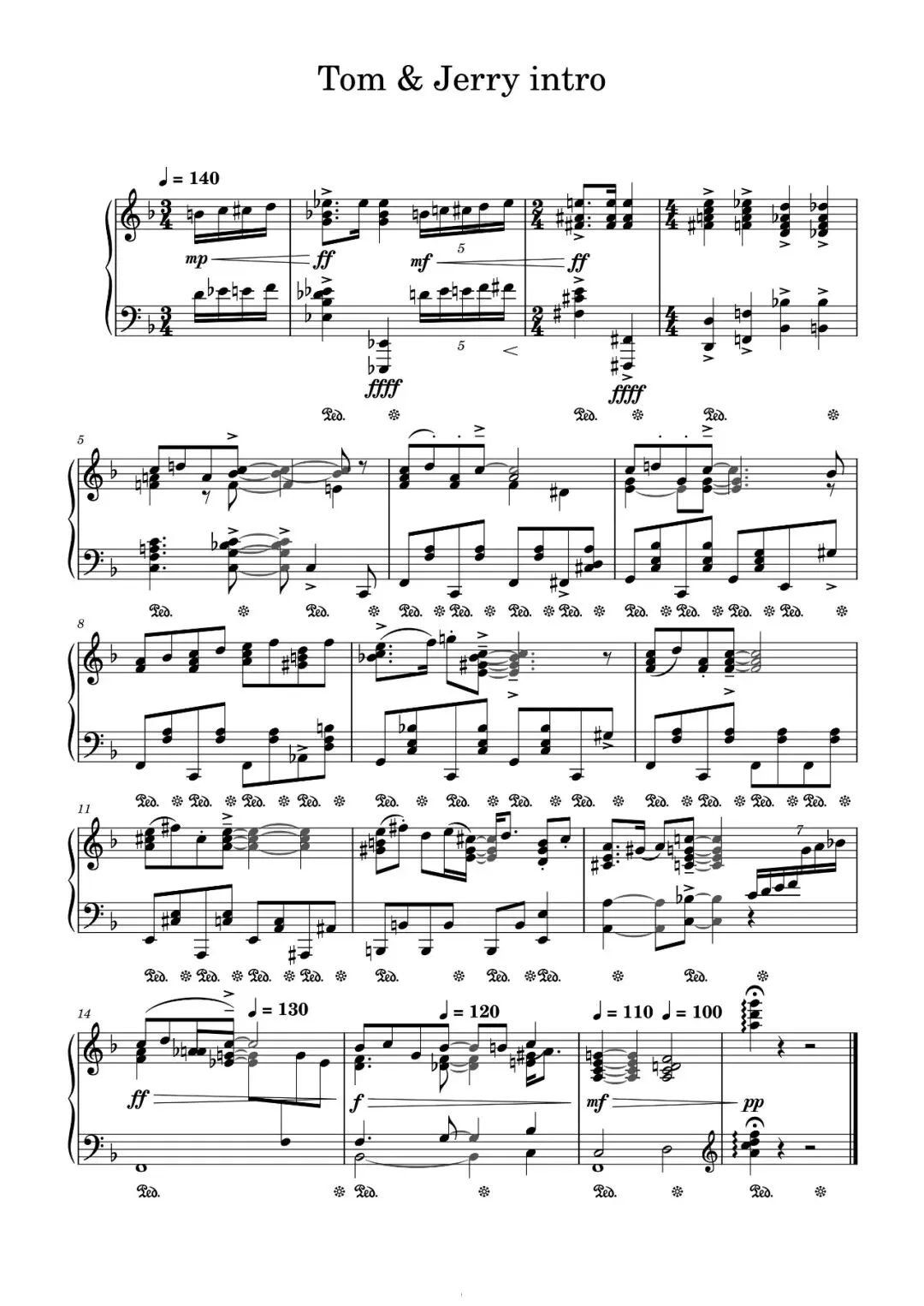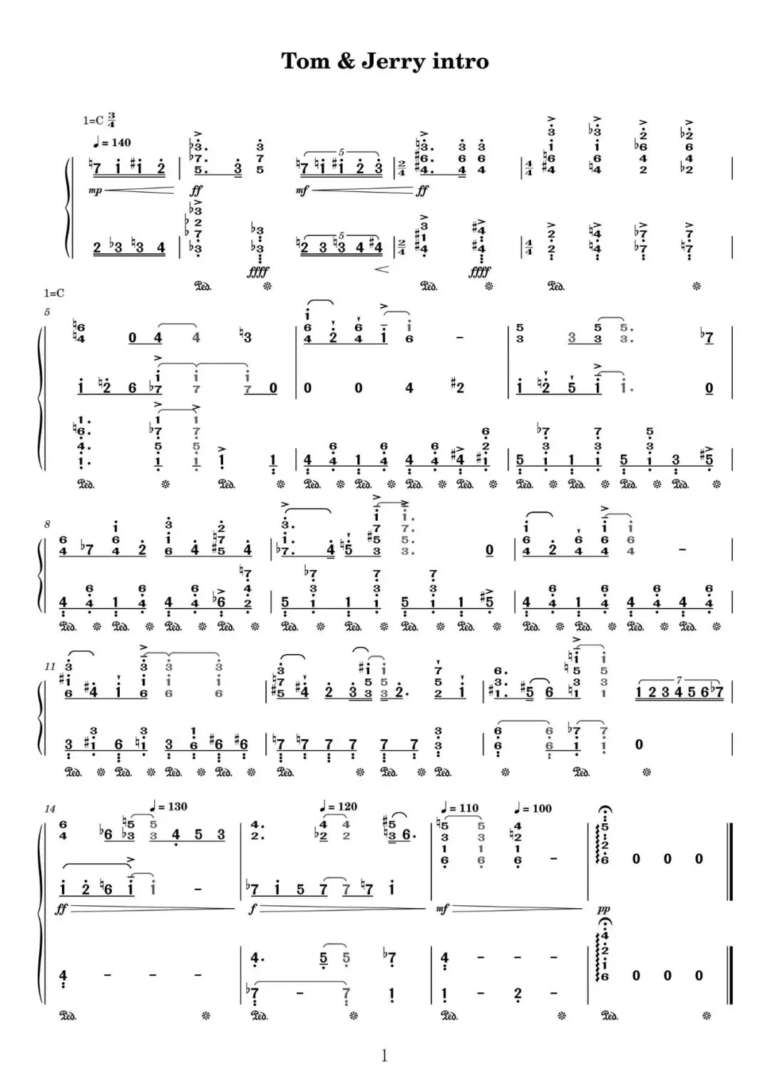 有谱|纯净版《猫和老鼠片尾曲 Tom&jerry intro》五线谱+简谱