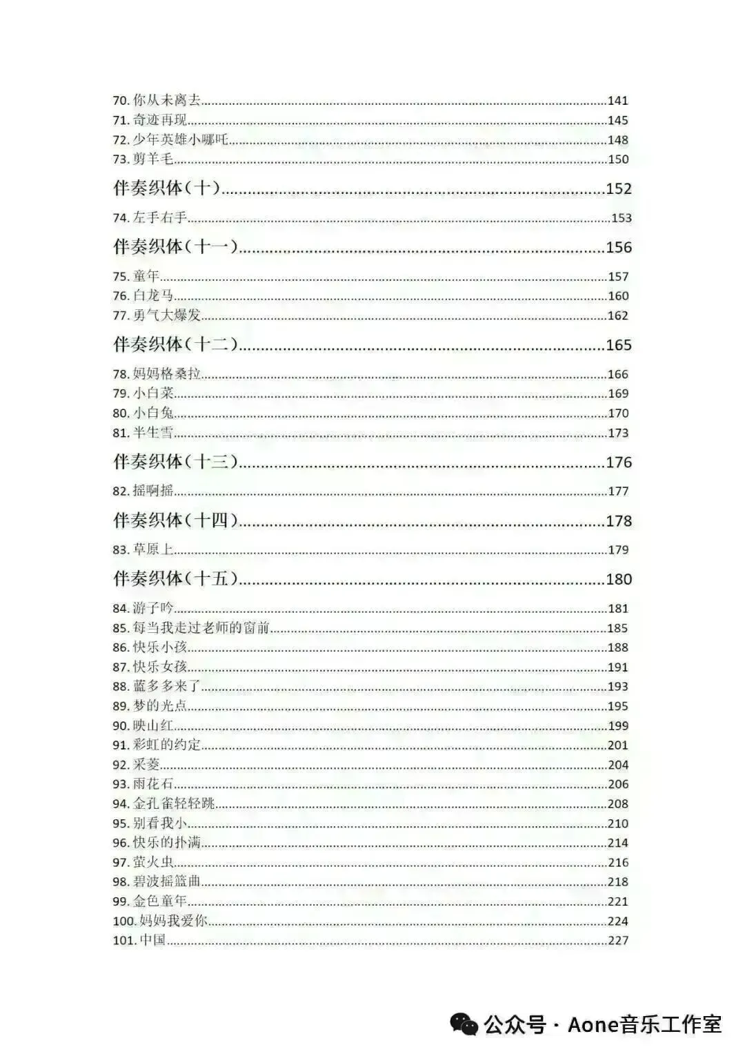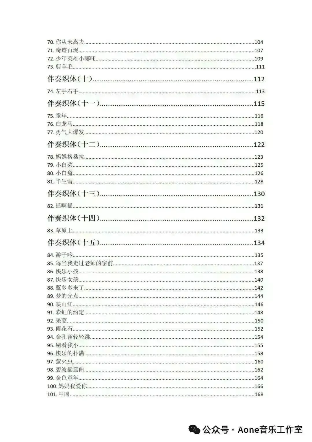 共收录了116首歌曲,涉及15种类型的伴奏织体。