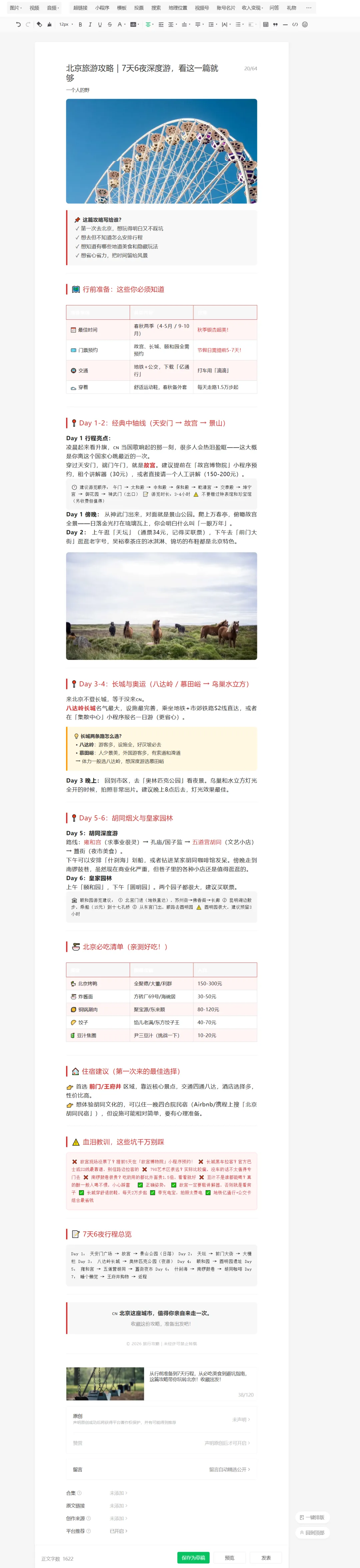 同理,让它做一份去北京的旅游攻略,当然也是不在话下,直接拿捏。