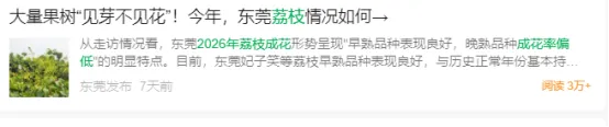 全省桂味、糯米糍等优质中晚熟品种成花率不足20%,部分果园仅10%,几近绝收;深圳、东莞、河源等主产区产量仅为去年1-4成,“荔枝自由”再度告急。