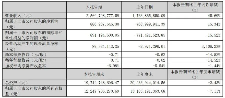 2025年,公司实现营业收入81.98亿元,同比增长44.78%;归母净利润亏损15.93亿元,上年同期亏损15.95亿元;扣非净利润亏损17.25亿元,上年同期亏损16.43亿元;经营活动产生的现金流量净额为-7.36亿元,上年同期为2.9亿元,同比下降354.09%。