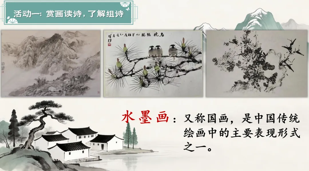 (p4)活动一:赏画读诗,了解组诗。