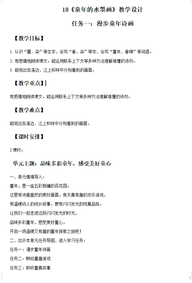 任务一:漫步童年诗画