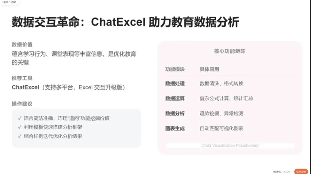 围绕模块八,聚焦 AI 赋能教师科研展开分享。从高效阅读、智能问卷、Excel 数据交互、数据可视化、科研申报书撰写五个方面,讲解如何借助 GAI 工具简化科研流程、提升研究效率,实现人机协同提质增效。
