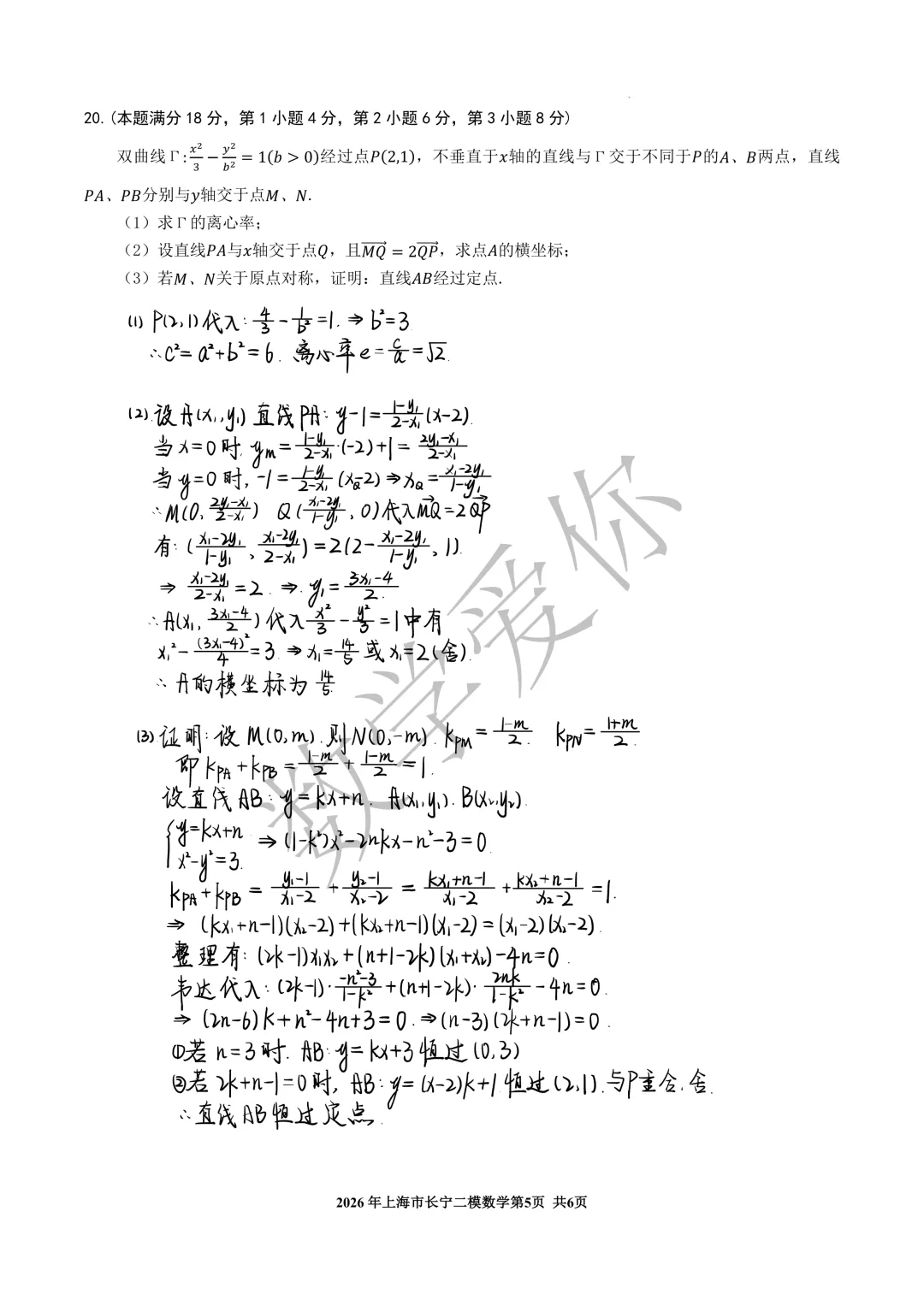 2026长宁区高三二模数学(word版+手写解析) 如需获得word版,仅需给公众号后台留言 【26长宁二模】(框内文字)即可 (可以直接复制框内文字去留言自动获取,其他留言都不会触发自动回复) 如遇链接失效,请留言