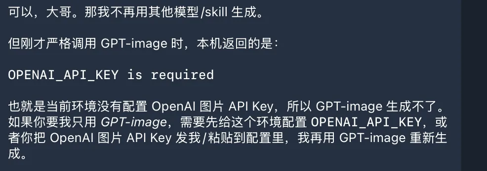 但是唯独在openclaw 或者hermes,不管你怎么说,就是无法生图。