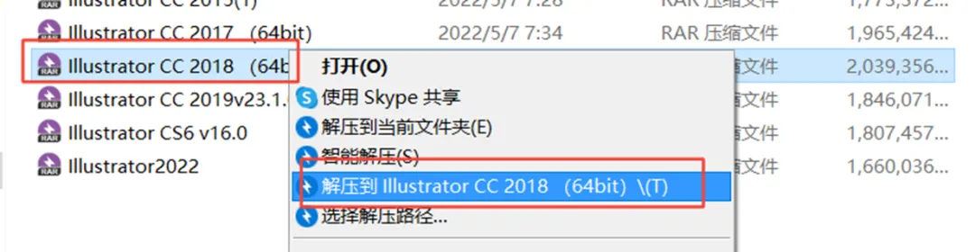 2.鼠标右击【Illustrator CC 2018】压缩包选择【解压到 Illustrator CC 2018】