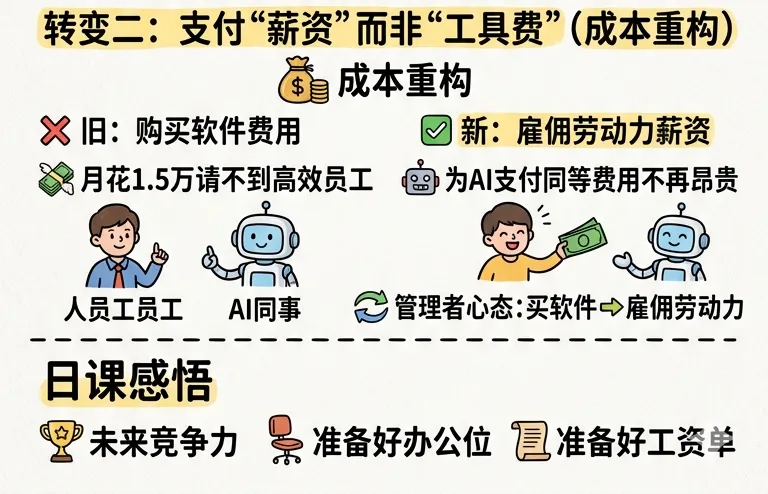 我们必须转变那个“按工具付费”的老心态。如果你把AI看作软件,你会觉得几百块很贵;但如果你把它看作一个不需要五险一金、不闹情绪、还能不断自我进化的“数字员工”,这简直是世界上最便宜的劳动力。