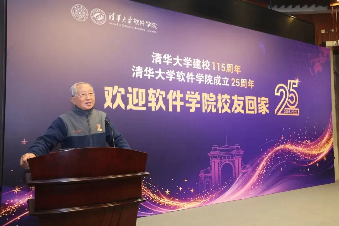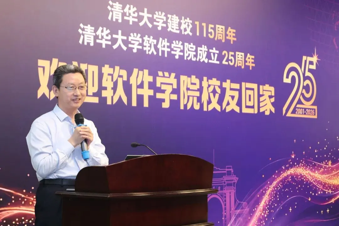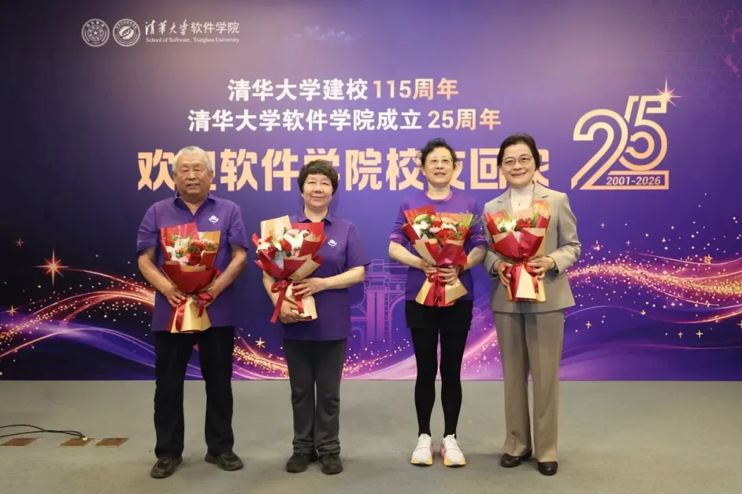 4月25日上午,恰逢清华大学建校115周年、软件学院建院25周年,2026年软件学院秩年校友纪念活动暨校友返校论坛在信息科学技术大楼多功能厅举行。中国工程院院士孙家广,软件学院党政领导班子全体成员、教师代表、退休教师代表、学院校友分会理事代表、各年级返校校友以及在校生代表齐聚一堂,共叙师恩情谊,共话发展蓝图。活动由软件学院党委副书记张荷花主持。