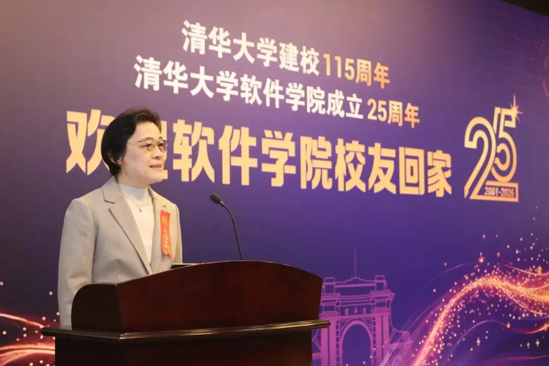清华校友总会软件学院分会常务副会长彭凌在发言中表示,作为参与学院初创的一员,她见证了学院从起步阶段逐步发展壮大、不断完善育人体系的全过程,始终与学院共同成长并祝愿学院越来越好。退休教师代表史志平在发言中表示,作为退休教师,始终牵挂各位校友。对学院25年来在教学、科研上的丰硕成果及人才培养成效由衷自豪,祝愿学院再创辉煌。