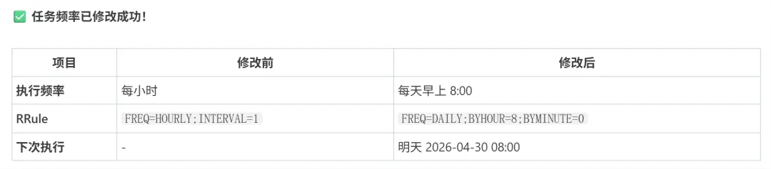 (4)Workbuddy注册会送积分,每天登录也会奖励100积分,但细水长流,我决定修改下订阅频率,改为每天早上8:00推送。
